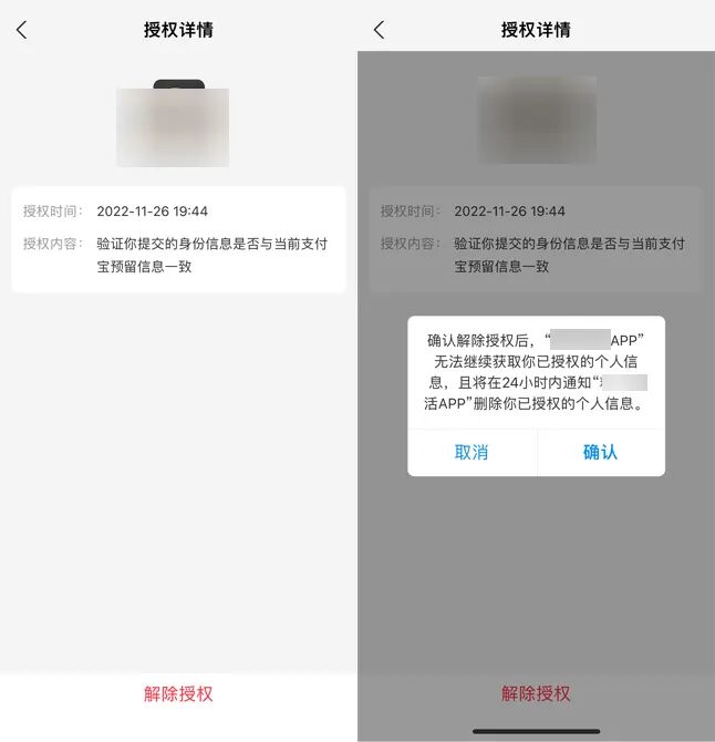 解除授权后,第三方应用将在24小时内删除已获取的个人信息。